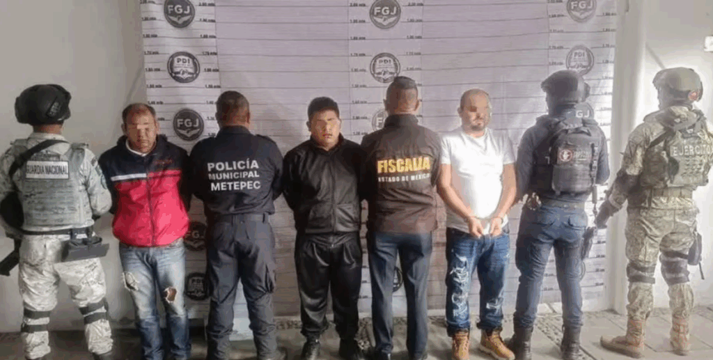 Como parte de un despliegue coordinado de seguridad entre la Fiscalía General de Justicia del Estado de México (FGJEM), la Secretaría de la Defensa Nacional, la Guardia Nacional (GN) y las policías municipales de Toluca y Metepec, los sospechosos fueron detenidos en las calles Benito Juárez y Leona Vicario, en la subdelegación La Constitución Totoltepec en la capital mexiquense.